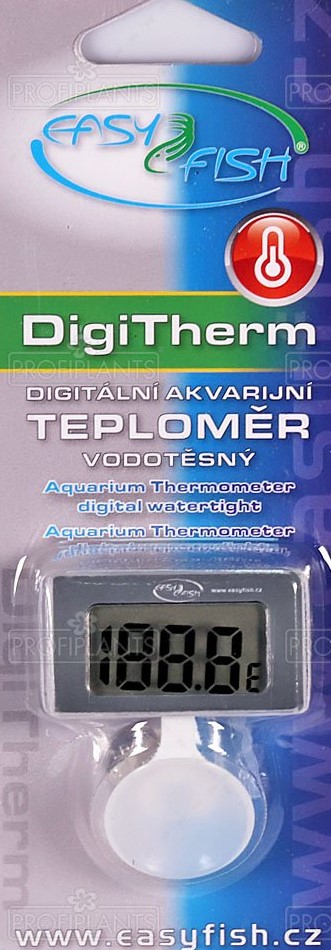 Elegantní digitální bateriový teploměr s přísavkou určený pro umístění do akvária.