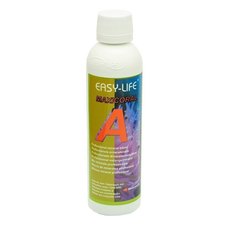 Maxicoral A je speciální kompletní směs minerálů pro krásné a zdravé korály, které jsou přípravkem (tzv. komplexem stroncia a baria) zásobovány. Dále Maxicoral A obsahuje také stopové prvky: Mn, Fe, Mo, Li, Rb, Cr, Co, Se, Cu, Zn, Ni a Sn.