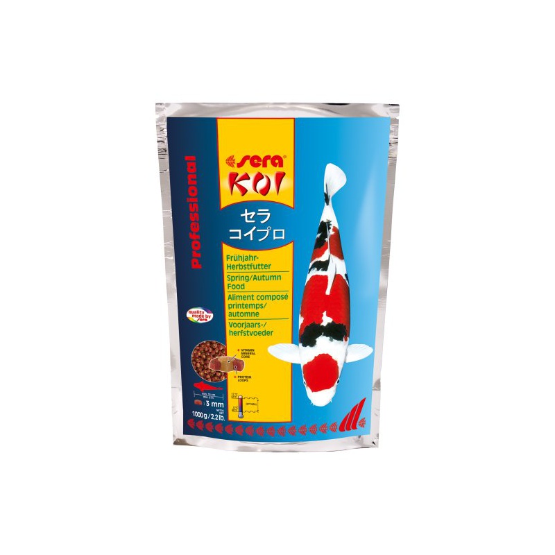 sera KOI Professional jarní/podzimní krmivo zohledňuje specielní nutriční požadavky Koi a ostatních ryb v jezírku při teplotách pod 17°C.Jedinečný sera proces ko-extruze umožňuje kombinovat různě ošetřené přísady. Prstenec obsahuje vysoce kvalitní bílkoviny a tuky pro optimální stravitelnost na základě přírodního spektra potravy ryb. Jádro se skládá mimo jiné z důležitých vitamínů, minerálů a stopových prvků pro zdravý růst a silný imunitní systém. Přidávaný vitamín C navíc posiluje odolnost vůči nemocem a snižuje náchylnost k onemocněním.Velikost granule 1 mm.