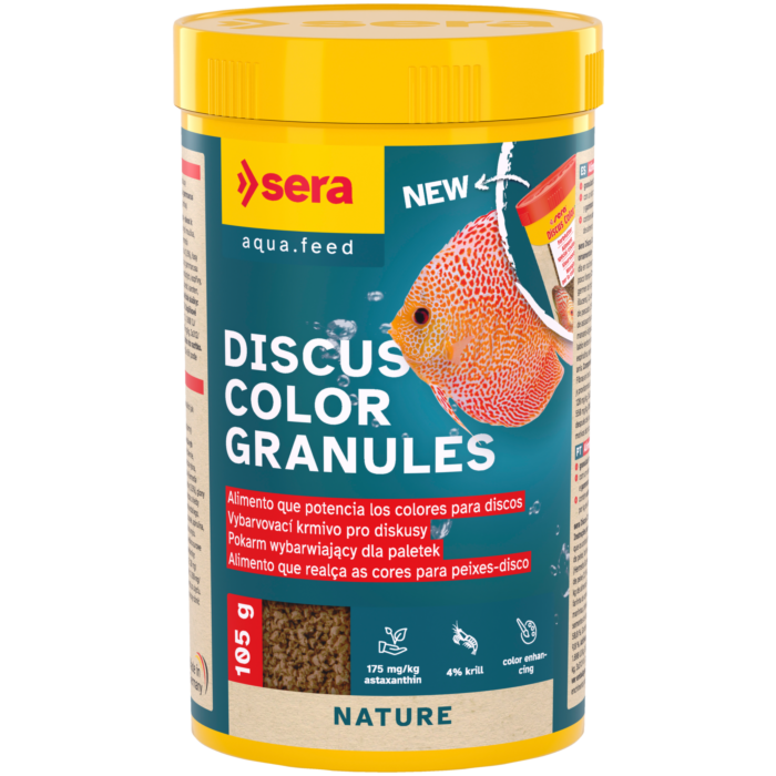 Discus Color Granules je vybarvovací krmivo bez barviv a konzervačních látek, které se skládá z šetrně vyrobených měkkých granulí pro všechny druhy diskusů.