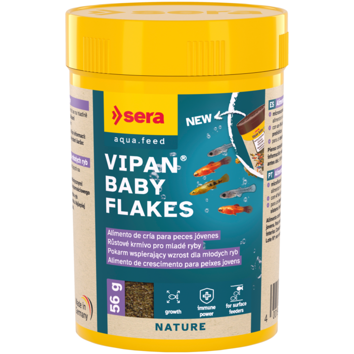 Vipan Baby Flakes je růstové krmivo bez barviv a konzervačních látek, které se skládá z mikro vloček pro všechny mladé ryby živící se na vodní hladině.